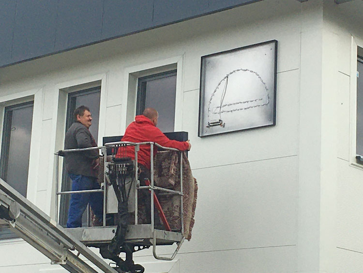 Trwa Złota Polska Jesień więc korzystając z dobrej, prawie letniej pogody wykonujemy ostatnie już prace instalacyjne na zewnątrz budynków naszej firmy. Oto przyszła właśnie pora na montaż podstawowych elementów identyfikacji wizuanej MAN.