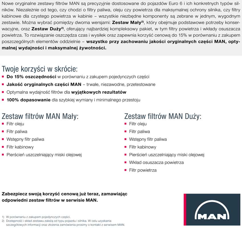 Zestawy filtrów MAN - zobacz co proponujemy: